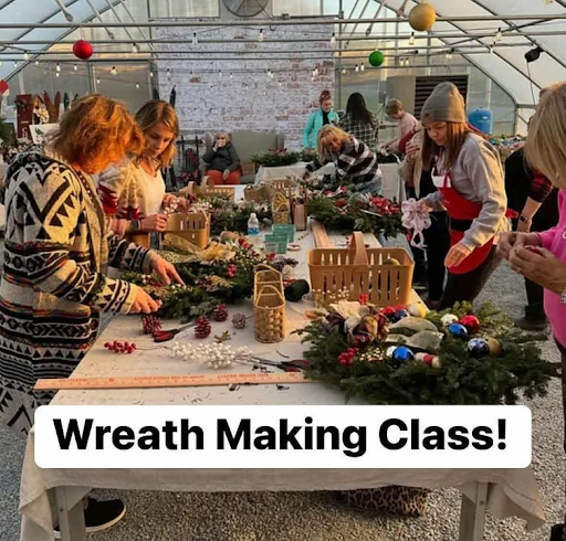 All materials included: A typical class provides everything needed for your project, such as a wreath frame, a variety of fresh or faux evergreens, and decorative accents like berries, pinecones, and ribbons.